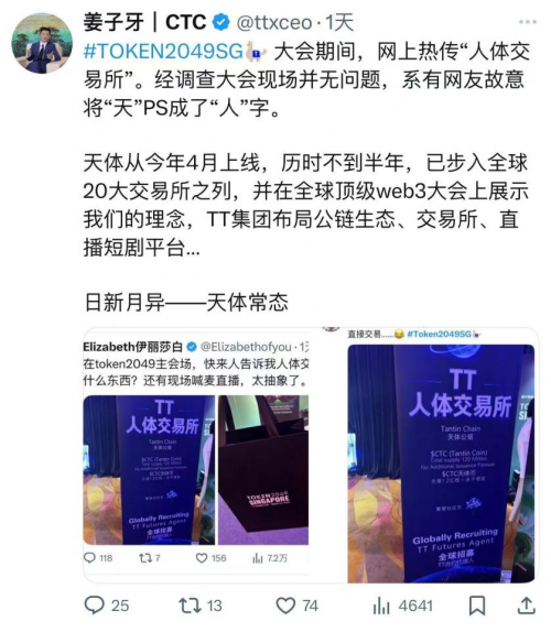 “人体交易所”的网络热传是怎么回事?实际上是本届新加坡Token2049一家名为天体交易所的参展项目,很多加密行业内外的人,都知道这家成立不到半年的交易。之所以知道它,是因为它背后的创始人是饱受争议的,曾在中国国内“呼风唤雨”的俞凌雄。