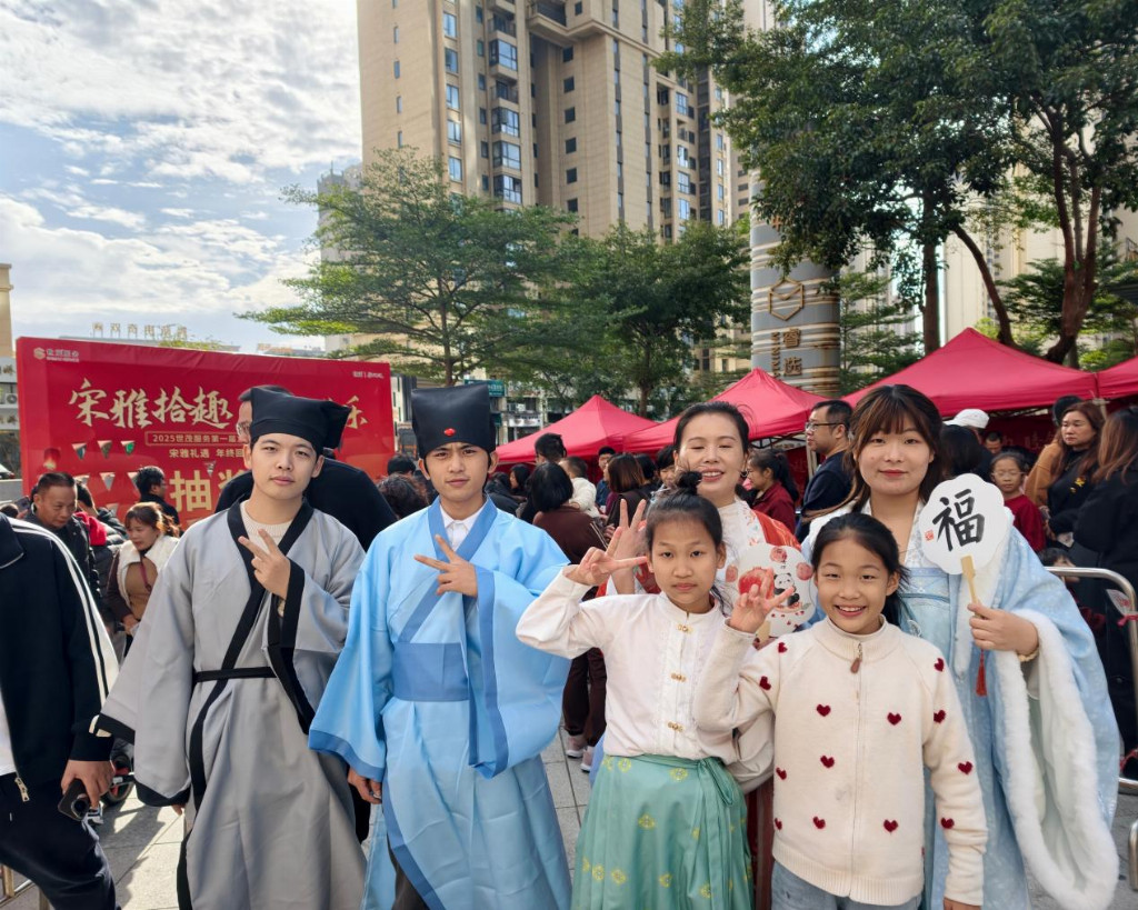 承袭宋朝集市的烟火雅韵,结合暖冬邻里相聚的美好期许,世茂服务东南区域石狮世茂摩天城物业服务中心精心组织一场集宋风体验、舌尖美味、互动狂欢与感恩回馈于的多重游玩盛宴,吸引业主踊跃参与,让冬日的小区满是暖意与欢笑。