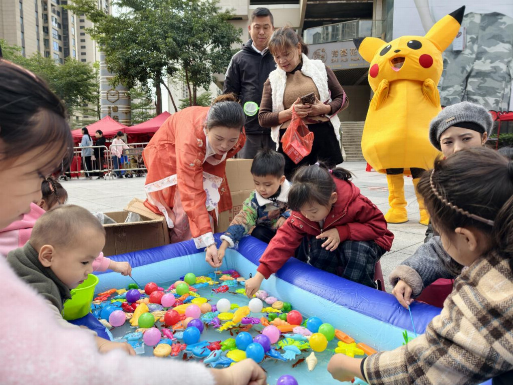 乐队和业主带来的才艺轮番上演,婉转旋律与宋风场景相得益彰,氛围感拉满;捞鱼游戏区更是孩子们的快乐天地,欢呼声、笑声此起彼伏;彩票刮刮乐摊位前人气火爆,大家手持刮刮乐满怀期待,每一次 “中奖” 的惊呼都能引来阵阵喝彩,即时性的惊喜让现场氛围持续高涨。