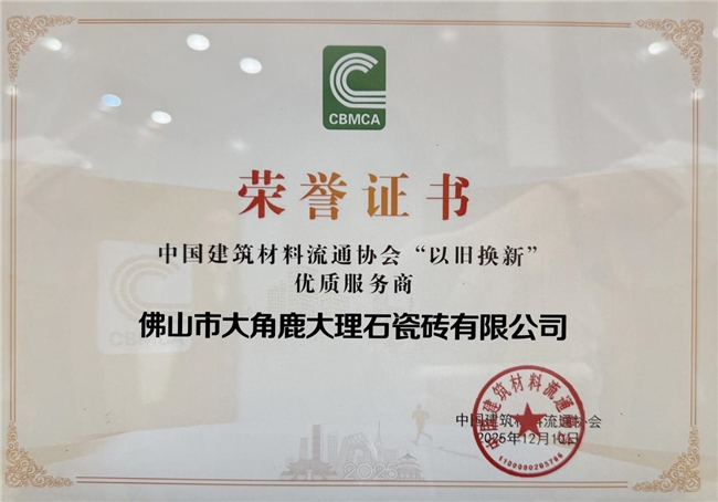 此次荣获全国建材与家居行业 “以旧换新” 优质服务商荣誉,是市场对大角鹿产品实力、服务品质的直接认可,更是消费者对品牌初心的坚定信赖。未来,我们将继续深耕超耐磨陶瓷新材料领域,为广大消费者提供更优质的陶瓷产品与更贴心的服务体验,与行业伙伴携手推动陶瓷行业可持续发展。