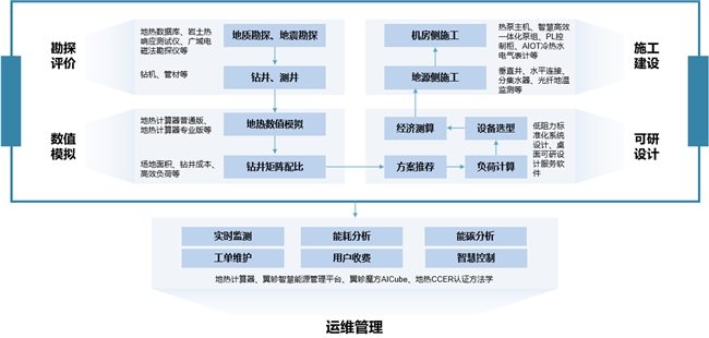 然而,在以往工程实践中,地热供暖制冷项目往往采用分段式、割裂式的推进模式,勘查评价、数值模拟、方案设计、工程实施与运行管理之间缺乏有效的数据继承与技术协同,导致设计假设与施工实际、建设成果与运行管理之间存在明显脱节。实践表明,在项目全生命周期中,若某一阶段未能参与前序关键决策,却在后续阶段承担运行或经济后果,往往会削弱系统整体优化的可能性。这种权责失衡与逻辑割裂,不仅影响单个项目的运行效果和经济性,也制约了地热供暖制冷向高质量、规模化发展的进一步推进。
