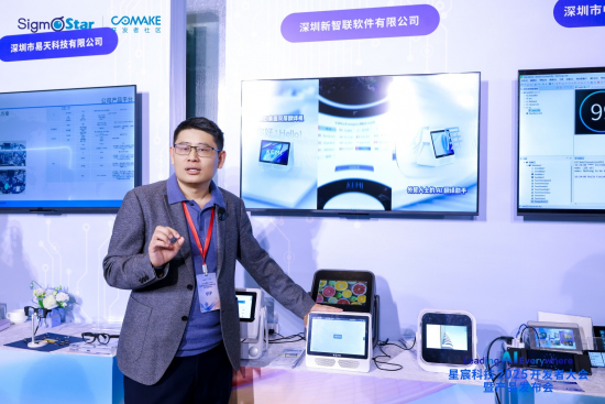在星宸科技开发者大会上,新智联作为LCD智能投影仪头部方案商及单芯双屏异显技术专家,不仅现场获颁“AI先锋应用奖”,还发表了“携手SigmaStar构建AI双屏交互底座”的主题宣讲。