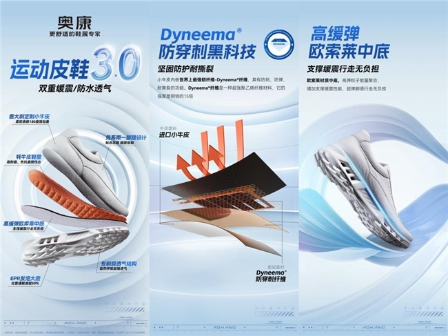技术突破,践行专业使命。依托研究院的科研实力,奥康国际在鞋材领域实现重大突破。以“奥康XL超轻大底”为例,其轻量化设计较常规鞋底减重50%,单只鞋重仅310克,实现舒适与科技的完美平衡。每双运动皮鞋均精选皮料,经植物萃取鞣剂加工精制,确保步履轻盈舒适。