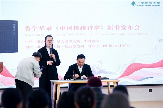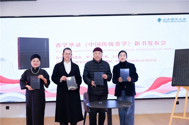 2026年1月7日上午,在北京图书大厦召开了一场被开生面的新书发布会,该活动以“香学华录《中国传统香学》新书发布会”为主题,吸引了来自36个省市地区的香文化从爱好者。古琴教育家、北京古琴文化研究会名誉会长、《中国传统香学》编委会顾问杨青,香学华录《中国传统香学》责任编辑孙晓梅,香学华录《中国传统香学》主编、太月香学体系创始人罗子杰,以及近56位太月香学体系全国师资团讲师参与了本次发布会。中国传统文化促进会香文化专业委员会副主任、太月香学学术委员会委员刘验新主持了本次发布会。
