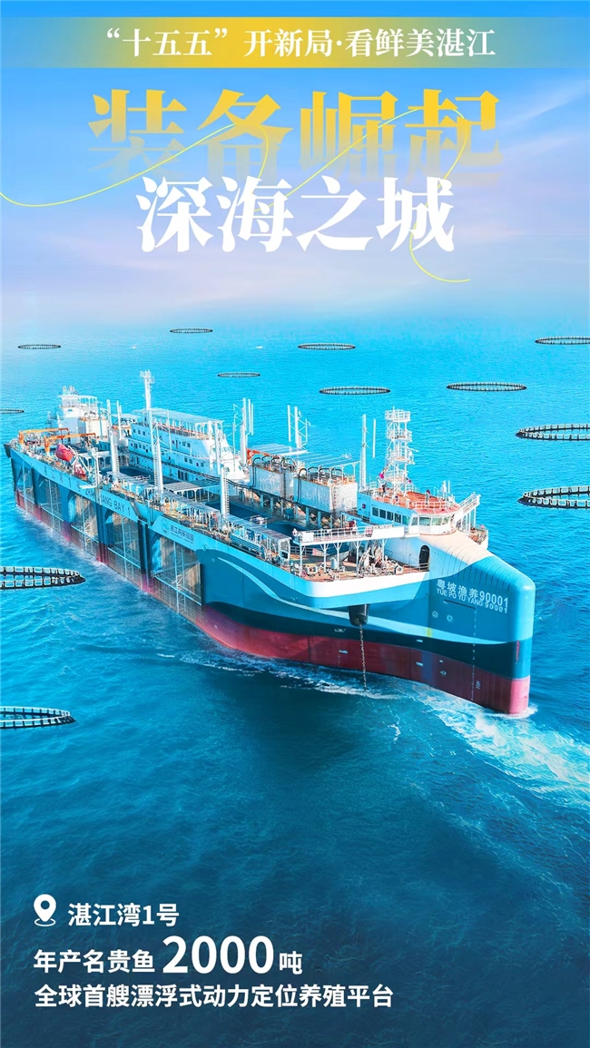 发展海洋经济,装备必须先行。“十五五”时期,湛江将全力推动海洋装备制造业崛起,持续推动大型智能养殖工船、深海网箱的系列化、规模化发展,如继续研发出“湛江湾二号、三号”。同时,湛江将配套发展饲料投放、活鱼转运、水下机器人等智能化装备,打造国家级深远海养殖装备研发与制造基地,为拓展“蓝色粮仓”提供坚实的“硬件”支撑。