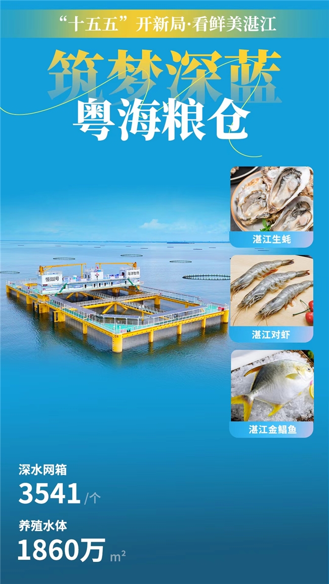 在湛江辽阔的海面上,3541个深水网箱及各大养殖平台,共同构成了总面积达1860万立方米的庞大“海洋牧场”。这种规模化、工程化的养殖模式,不仅大幅提升了水产品稳产保供能力,也为保护近海生态环境、发展绿色渔业提供了“湛江方案”。