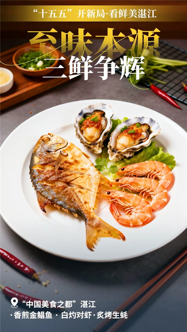 香煎金鲳鱼、白灼对虾、炙烤生蚝——“湛江三鲜”不仅是饕客心中的至味,更是三大水产支柱产业最直接的风味表达。这张美味名片,极大地提升了“中国海鲜美食之都”的吸引力,从消费端强劲拉动了养殖、加工、流通全产业链的升级。