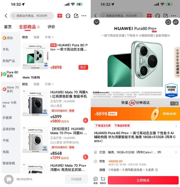 小编关注到,华为Pura 80系列新机已经在京东上开启了预售,如果对拿到新机有更高速度要求的,还可以通过京东秒送来预约,通过附近门店来发货,最快9分钟新品就能送到了。小编也已经下了单,坐等开售啦。