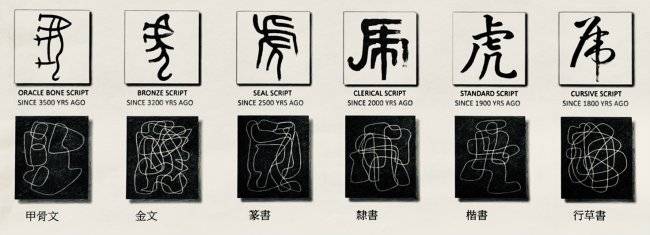 图解1/2:汉字六体书虎,赵宏书作/一笔画:以一部画范式将六体书生成新的当代图像,这里的“一”笔,即:汉字的“一”的延伸。每一个一部画都是在数十秒中一气呵成,演讲者是世界“一笔画之王”。