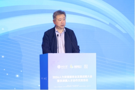 北京大学社会科学部副部长赵诺在致辞中代表北京大学对论坛的顺利举办表示祝贺。他指出,北京大学人力资源开发与管理研究中心是学校社会科学领域的卓有成效的研究机构,以萧鸣政教授为代表的团队深耕中国人力资源服务业研究,持续18年发布蓝皮书系列成果,对中国人力资源服务业发展作出了重要贡献。期待本次论坛汇聚各方智慧,为进一步推动人力资源服务业高质量发展提供真知灼见。