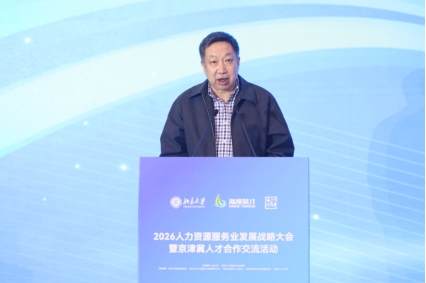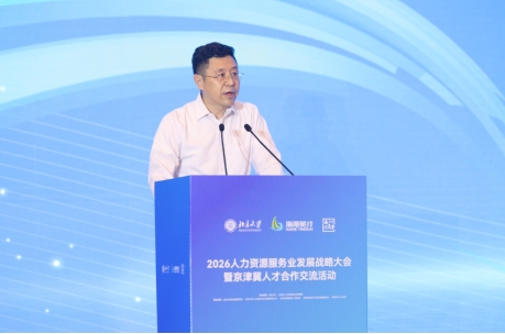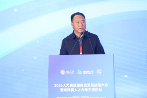 2026年4月23日,由北京大学主办,北京大学政府管理学院、天津市人力资源和社会保障局、北京大学人力资源开发与管理研究中心、天津经济技术开发区管理委员会、中国北方人才市场共同承办的2026中国人力资源服务业发展战略大会暨研究成果发布会在天津滨海新区成功举办。大会以“两业融合双向赋能,人才制造共促发展”为主题,汇聚来自政界、学界、企业界的领导、专家学者和行业代表,线下参会人数逾500人,线上同步直播收看近105万人次。