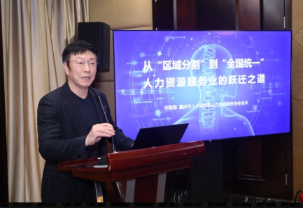 研讨会上,重庆市人才研究和人力资源服务协会会长何振国以“从区域分割到全国统一:人力资源服务业的跃迁之道”为题发言,提出行业面临制度断裂、信息断裂、信用断裂、生态断裂四大问题,建议实施制度拉平、数据联通、信用互信等三大工程。
