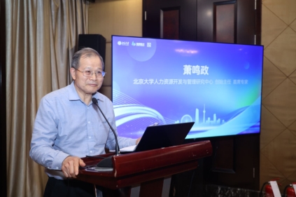 在主题报告环节,萧鸣政教授代表北京大学项目组发布《2025年度中国人力资源服务业高质量发展评估体系研究与监测情况报告》。萧鸣政教授系统回顾了项目研究起源,自2006年协同上海外服开展研究、2011年受人社部委托开展全国人力资源服务业统计指标体系研究以来,已持续近20年。自2015年开始,项目组持续对全国31个省市区进行评估监测,通过评价引领促进人力资源服务业高质量发展。