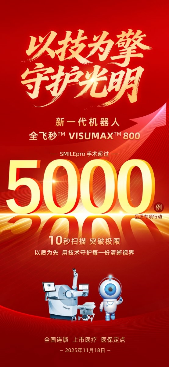 2025年11月18日,普瑞眼科屈光专科再迎行业里程碑——新一代机器人全飞秒?VISUMAX 800新微创手术SMILE pro手术量成功突破5000例。这一数字,不仅印证了普瑞眼科在屈光手术领域的持续领先地位,更体现了其在技术引进、临床应用与团队建设上的系统化实力。
