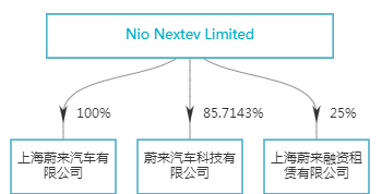 而蔚来真正的经营主体上海蔚来汽车有限公司(NIO Co. Ltd.),则由Nio Nextev Limited 100%控股。