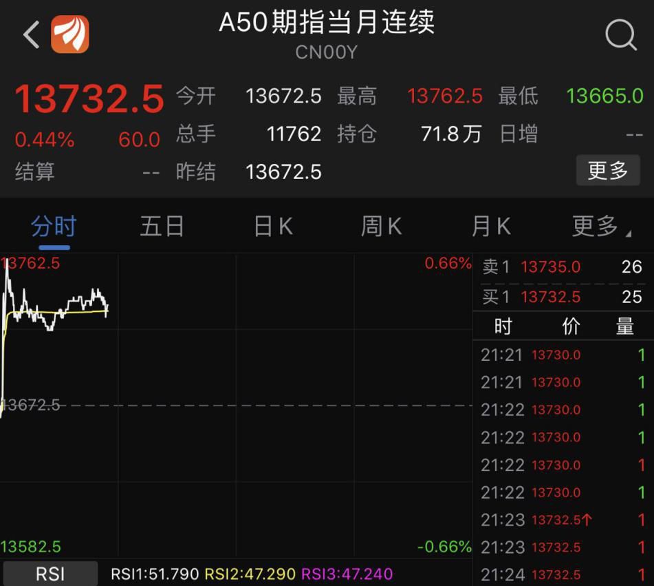 A50指数亦在跳涨。