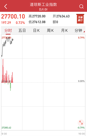 重挫两日的美股市场也迎来反弹,美股全线高开,道指涨0.48%,纳指涨0.43%,标普500指数涨0.34%。随后,美股三大股指继续上行,道指上涨近200点。