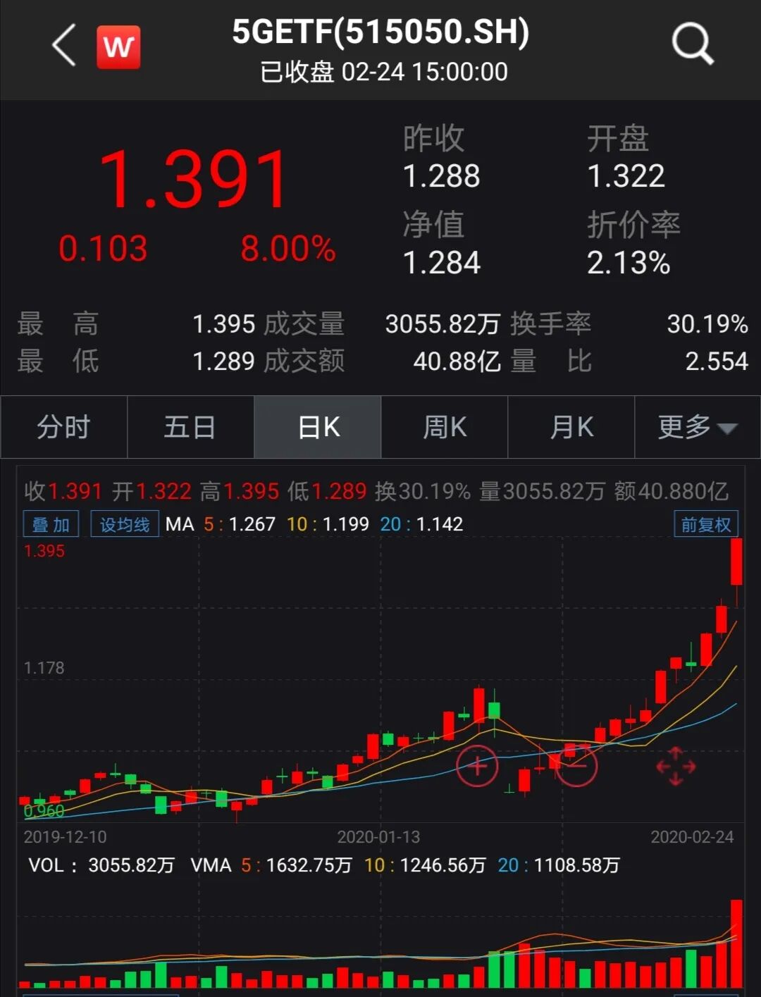 科技主题的ETF基金表现强势,昨日成交额超过10亿元的4只科技类ETF均创下历史新高。其中,5G ETF(证券代码515050)大涨8%,指数点位和成交量均刷新纪录。莫尼塔指出,年初至今股票型ETF基金份额合计增加237亿,科技类ETF基金增加的份额占全部股票型ETF基金的八成以上。