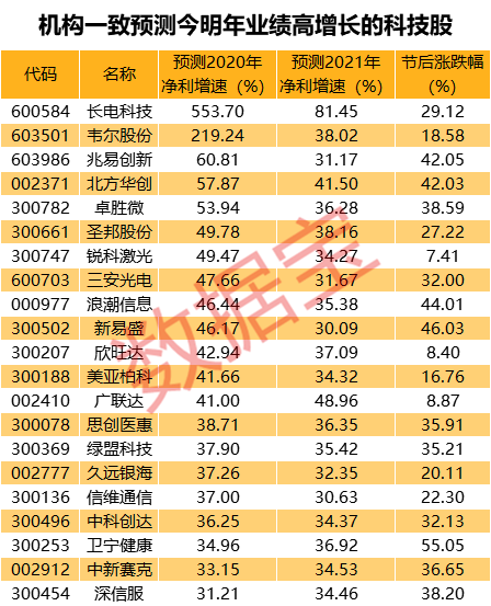 其中,云计算概念股浪潮信息获得31家机构预测,预测机构家数最多,机构一致预测今年、明年净利增速达到46.44%、35.38%。预测净利润增速最高的是长电科技,24家机构一致预测今年净利增速超5倍,明年净利增速超80%。