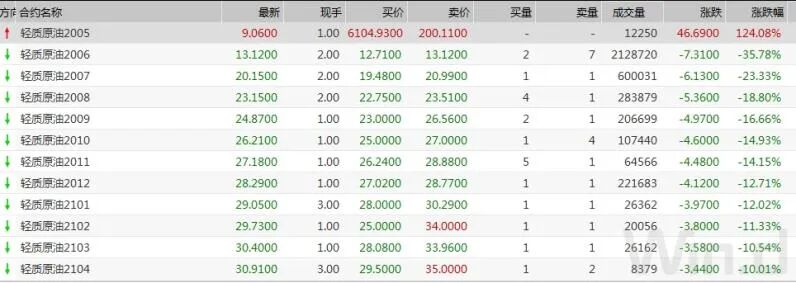 据央视财经分析称,如果说此前美国西德州轻质原油WTI的5月期货价格重挫、一度交易在负37美元每桶是因为交割日期的临近,交易员们不得不平仓而出现集体抛售,那么6月的WTI距离交割日期还有将近1个月的时间,但价格在周二继续暴跌,则更多说明的是市场情绪是多么的恐慌,以及对油价的前景多么的悲观。